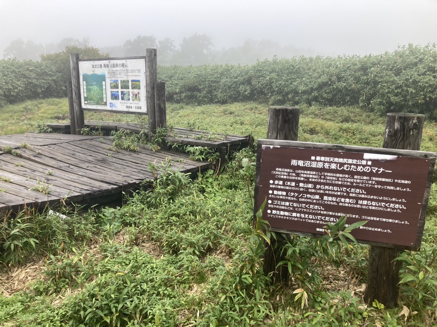 【会員山行】2025.9.14 雨竜沼湿原~南暑寒岳/増毛山地 ⑱ 会員山行 2025.09.152025.10.06 登山口にある管理棟で、協力金500円を支払って登山届を提出する。出発してまもなく白竜ノ滝に寄り道。昨日の大雨の影響で凄まじい勢いで沢水が流れ落ちていた。 雨竜沼湿原は蛇行した川に沿って小さな沼が点在して神秘的風景。我々の他には1名の登山者のみで、この風景を独占できた。 緩やかだが長い登りを経て南暑寒別岳の山頂に到着する。あいにくのガスで視界はきかなかった。が、下山時には天候も回復して湿原の全貌が見渡すことができて、絶景に息を呑む。 秋色が進む雨竜沼湿原