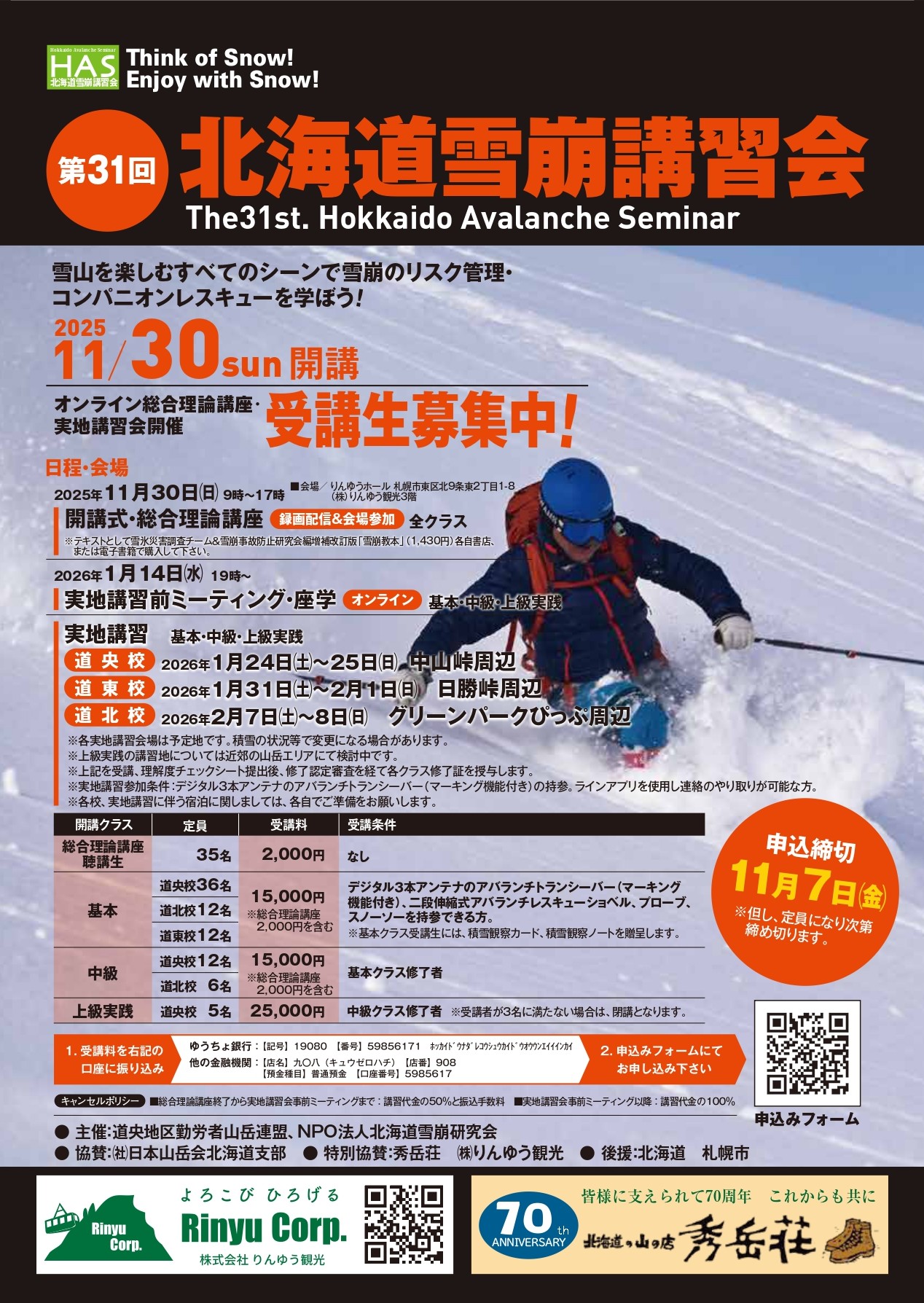第31回北海道雪崩講習会(2025-2026) 受講申し込みフォーム