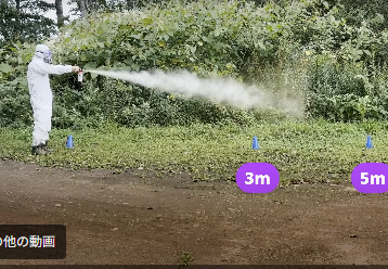 ①は、グリズリーの本場・米国モンタナ州での研究・開発で生まれ40年間リードしてきた定番製品、②と③はそれに続く後続製品で、①~③は、米国環境保護庁EPA(U.S.Enviromental Protection Agency)が効果と安全性を認証した製品で、④は唯一の国産品、⑤は本州のツキノワグマ用として販売されているが、メーカーへの照会によると「クマ用製品ではない」とされ、現実的には対人用。①~⑤はいずれもスプレーによりカプサイシン成分のガスの壁を作るタイプで、⑥は「水鉄砲」式で、それぞれの効果を及ぼす距離、噴射時間を計測、実際の映像を見ることができる。