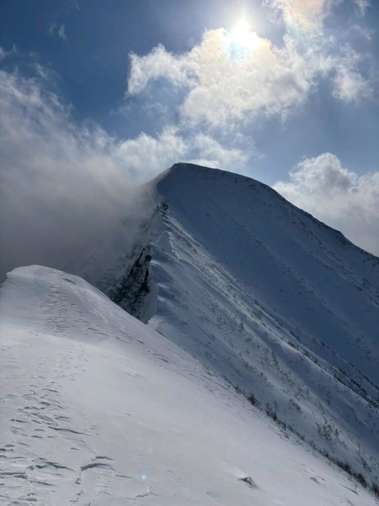 斉藤さんは「視界不良となったシュンベツ岳(1855㍍)の岩稜帯の通過、視界がほぼゼロとなったピリカヌプリ(1631㍍)の急な下降で雪斜面の見極めに苦労した」「日高山脈の主稜線はロープを使わないけれど、南アルプスに比べても急峻で手ごわさを感じた」などと振り返る。