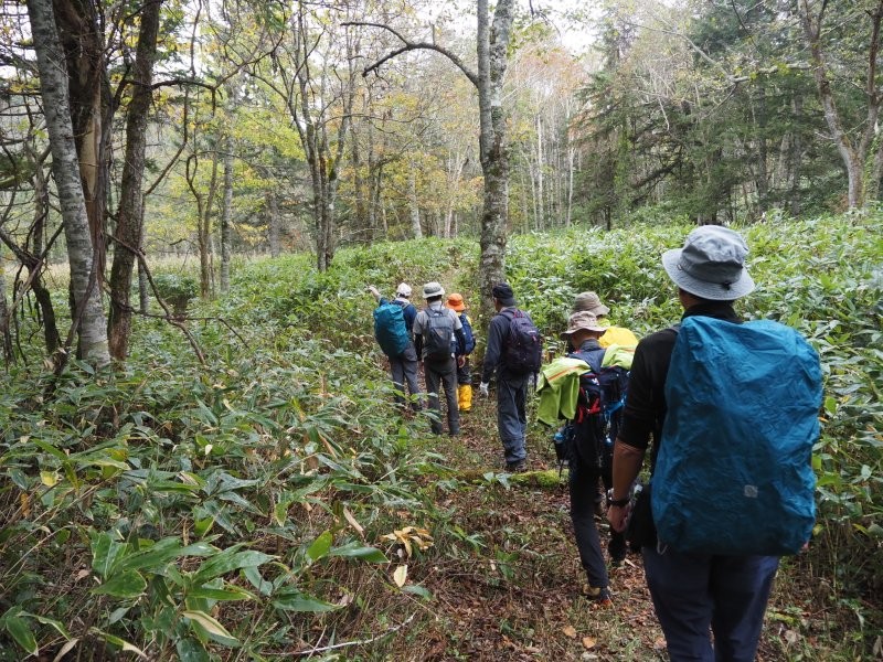 日高山脈登山会議(日高町)は10月12日、同山脈の国立公園化1年に合わせて、三号の沢(サンゴ渓谷コース)から北日高岳に至る「ホロナイ林道」「トラバースルート」を使って、地域の産業遺産と北日高岳を巡るルートで「第1回北日高岳登山会」を開いた。