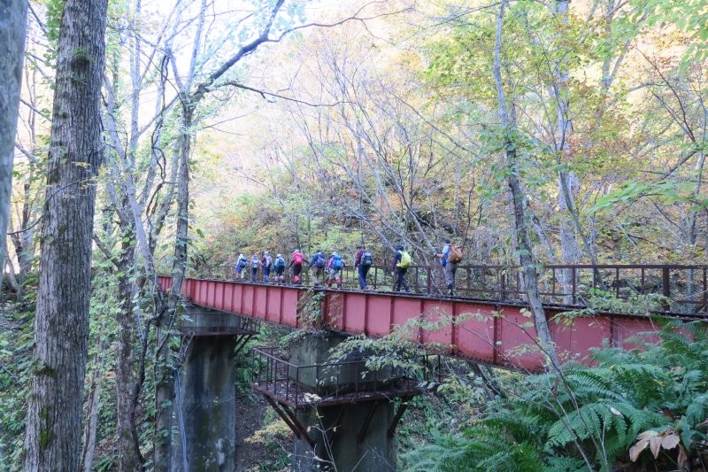 明治時代後期には主要国道などに設置された一等水準点が増毛山道に17基(うち10基を発掘)、濃昼山道に6基(4基を発掘)設置、重要な道路だった証でもあります。両山道とも江戸、明治、大正、昭和にかけて多くの住民や旅人が通行、利用しましたが、日本海沿いの国道231号の整備(1981年全線開通)とともに利用者が減り、戦後に廃道化が進みました。21世紀に入ってから、住民有志、ボランティアにより、増毛山道は2016年、濃昼山道は2005年に復元。両山道は歴史的役割や機能を体感できる貴重な山道として評価、2018年に北海道遺産に選定されました。