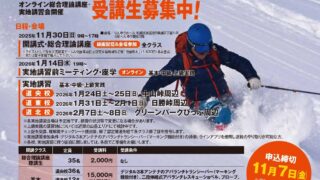 当支部も協賛などで関わる「第31回北海道雪崩講習会」の受講者募集がスタート。実地講習は、道央校、道東校、道北校に分かれ、基本・中級・上級実践の3区分での募集。総合理論講座のみの「聴講生」も募集。①11月30日(日)9時~17時、札幌・りんゆ...